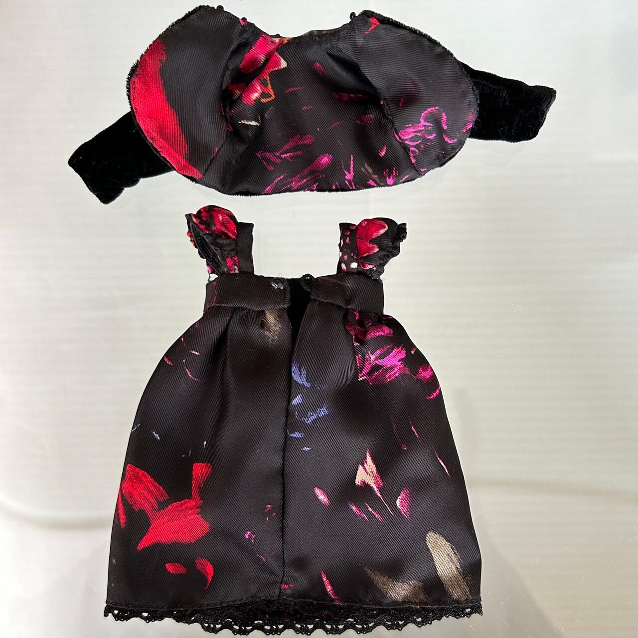 ベルベットの黒ボレロの裏は、ワンピースと同じ黒地に赤い花をあしらった生地になります。